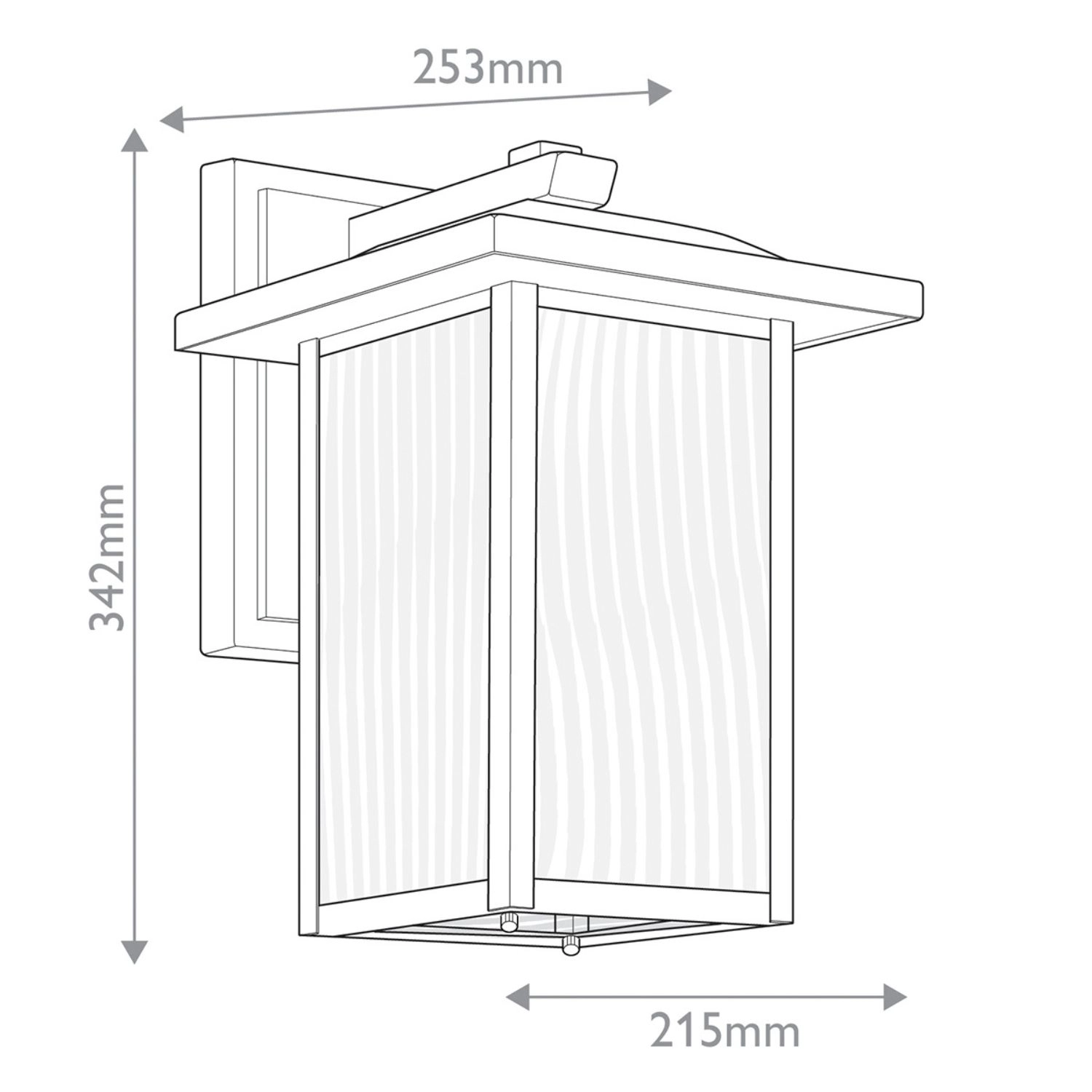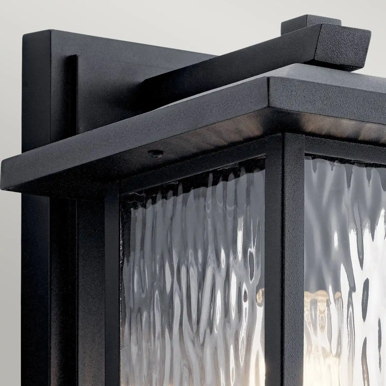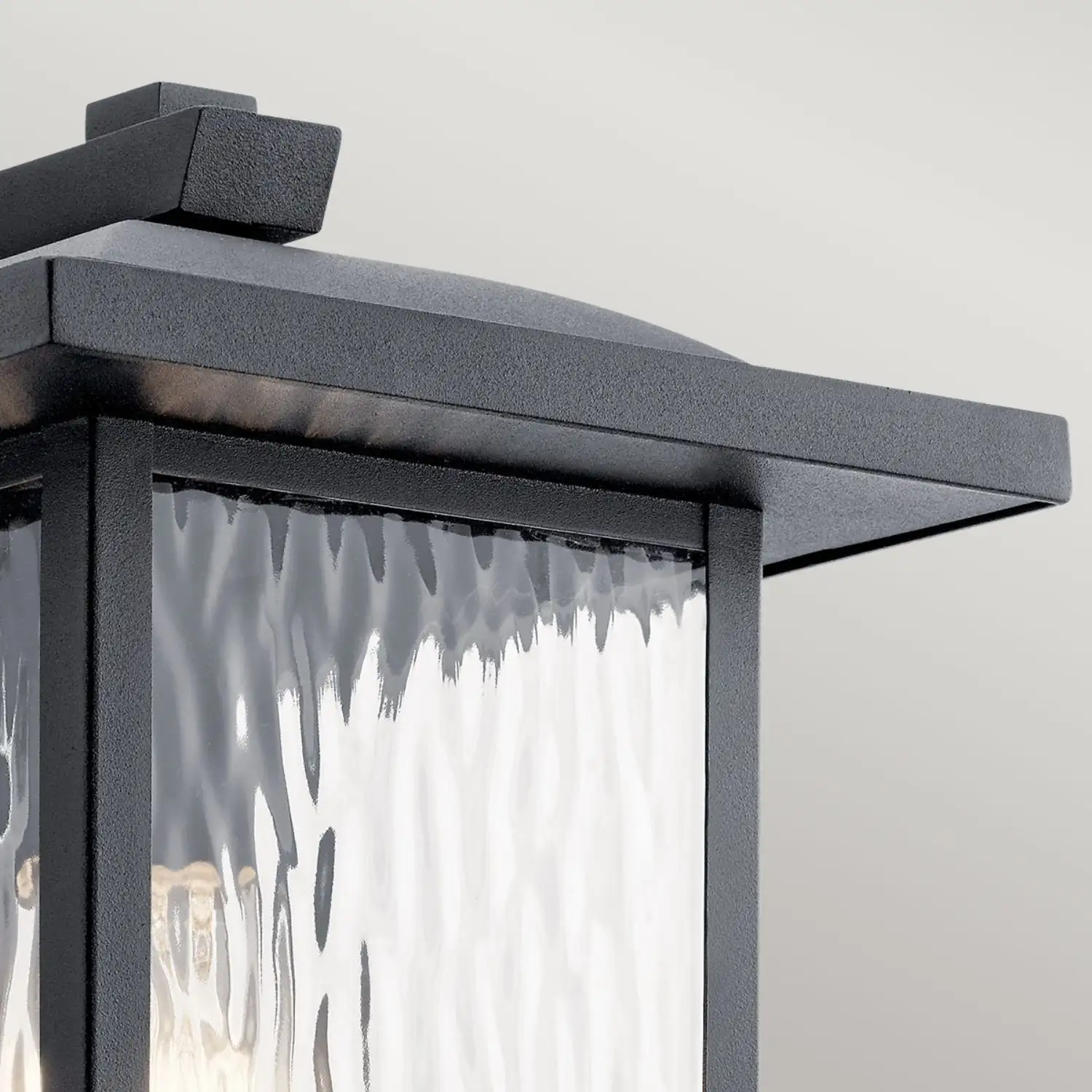 Wyjątkowym elementem lampy jest dekoracyjne szkło o strukturze przypominającej wodospad, które subtelnie rozprasza światło, tworząc efektowną i przyjemną iluminację elewacji.